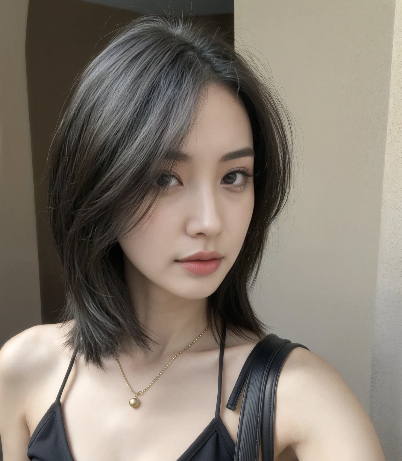 搭配[黑色吊带+叠戴项链],露出肩颈线条,发丝随意落在锁骨上,韩女街头抓拍感拉满商(被问是不是在韩网偷的穿搭!)