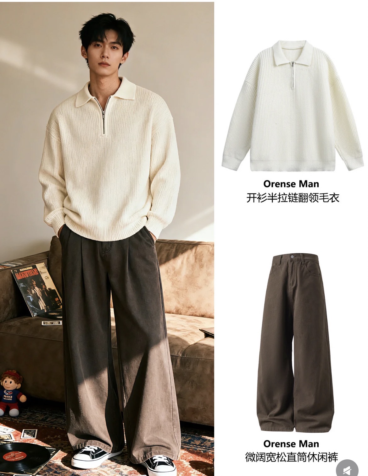 日系复古与休闲风的融合风格,整体搭配层次丰富且协调。