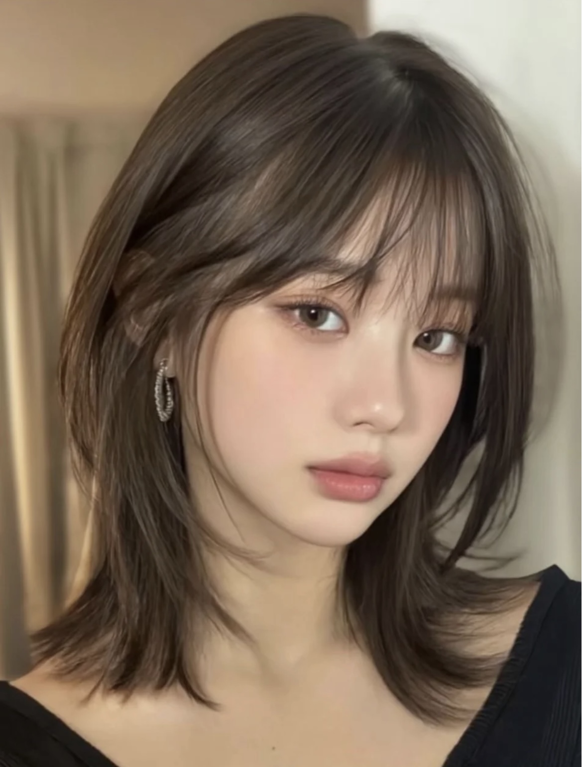 鹅蛋脸能完美驾驭最检验脸型的黑长直,凸显清纯或清冷气质。保持发质柔顺有光泽是关键。