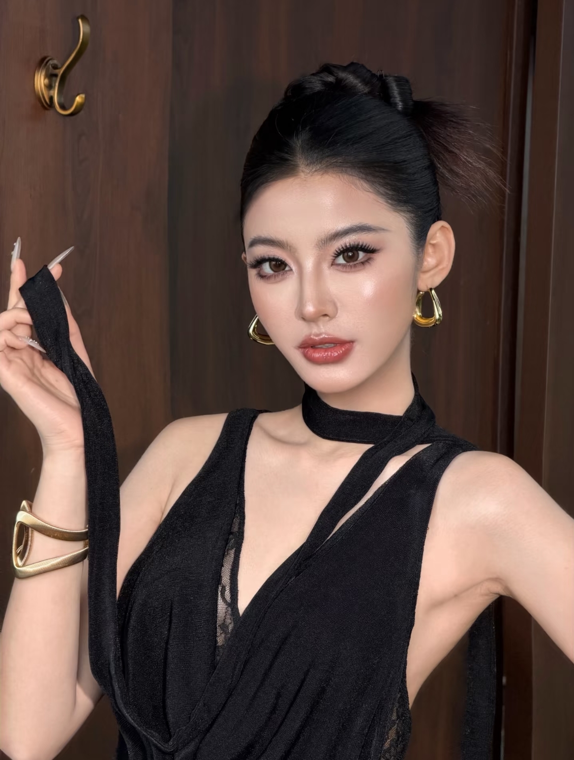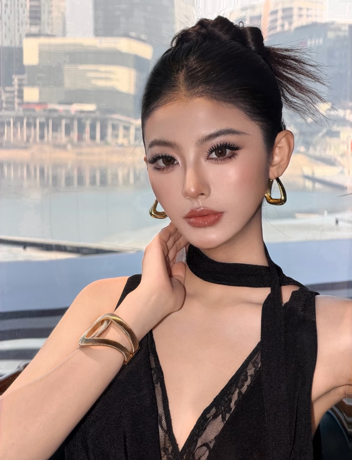 高丸子头 / 高马尾:干净利落的露额发型,能突出精致眉眼和立体修容,尽显千金大小姐的干练气场,也是最经典的搭配。